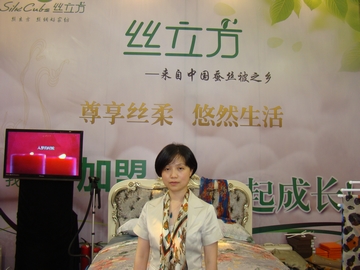 在本次展會上,《科技創(chuàng)新與品牌》雜志社記者采訪了蘇州絲立方家紡科技有限公司徐女士,她說,希望通過展會找到合適的加盟商,把天然環(huán)保的蠶絲產(chǎn)品介紹給更多的用戶讓他們了解和使用。她強(qiáng)調(diào)說選購蠶絲產(chǎn)品時要看顏色和亮度,聞聞氣味,純絲有淡淡的蠶絲氣味,用手摸摸感到有光滑感。目前“蠶絲被”行業(yè)中沒有比例標(biāo)準(zhǔn),消費(fèi)者很難知道所含蠶絲的比例,這就是考驗(yàn)廠家的誠信問題。