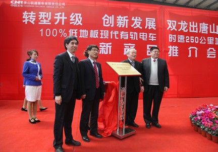 隨后,在列調(diào)廠房,唐車隆重舉行了自主創(chuàng)新研制的新產(chǎn)品推介會,唐車公司兩款領(lǐng)跑國內(nèi)一體化交通的新產(chǎn)品——100%低地板現(xiàn)代有軌電車和國產(chǎn)時速250公里城際動車組,首次亮相公眾。這兩款新產(chǎn)品以“綠色智能人文一體化”理念,多式聯(lián)運、互聯(lián)互通,為不同城市的現(xiàn)代交通需求提供解決方案。該動車組采用智能化設(shè)計,擁有完備的車載實時診斷、控制和遠(yuǎn)程監(jiān)測系統(tǒng),既為旅客提供了安全保障,又為行車、調(diào)度、指揮、維護保養(yǎng)提供了決策依據(jù),最大程度減輕了人員工作強度,延長了車輛維保周期。