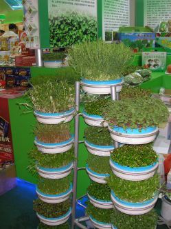 記者在第七屆中國(guó)(北京)餐飲-食品博覽會(huì)上,了解了多種多樣的農(nóng)副產(chǎn)品,在其中有一種像花盆的芽菜特別引起了記者的注意。它那層疊式的培育方式很美觀,看上去就有一種田園的安逸感。這家企業(yè)是北京綠山谷芽菜有限責(zé)任公司。我有幸采訪到企業(yè)董事長(zhǎng)張桂琴女士,她勤勞樸實(shí),剛見(jiàn)到她時(shí)正在給芽菜澆水。