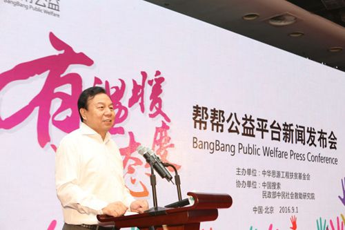9月1日,在《中華人民共和國(guó)慈善法》正式施行當(dāng)天,由中華思源工程扶貧基金會(huì)(以下簡(jiǎn)稱“思源工程”)主辦,中國(guó)搜索、中民社會(huì)救助研究院協(xié)辦的幫幫公益平臺(tái)上線新聞發(fā)布會(huì)在北京舉行,全國(guó)政協(xié)副主席、民建中央常務(wù)副主席馬培華,新華社原副社長(zhǎng)兼常務(wù)副總編輯、中國(guó)搜索總裁周錫生,全國(guó)政協(xié)委員、中華思源工程扶貧基金會(huì)副理事長(zhǎng)兼秘書(shū)長(zhǎng)李曉林,民政部社會(huì)救助司原司長(zhǎng)、中民社會(huì)救助研究院院長(zhǎng)王治坤等領(lǐng)導(dǎo)出席活動(dòng)并講話。