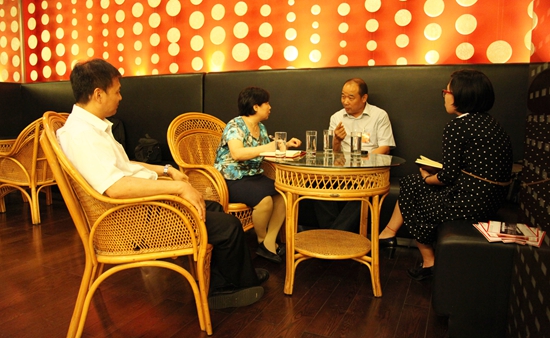 高元鴻(右二)接受本刊記者采訪,(左一)天津市科協(xié)組織人事部部長侯建國
