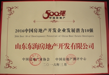 2016中國房地產(chǎn)開發(fā)企業(yè)發(fā)展?jié)摿?0強(證書)
