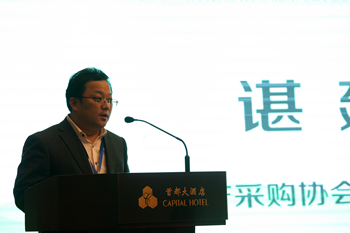 中國特產(chǎn)采購協(xié)會常務(wù)副會長兼秘書長諶建章代表主辦單位致辭