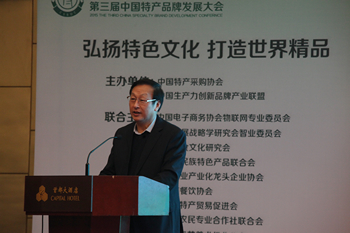 中國特產(chǎn)采購協(xié)會常務(wù)副會長兼秘書長諶建章代表主辦單位致辭。他表示特色產(chǎn)業(yè)對區(qū)域經(jīng)濟(jì)發(fā)展的重要性日益明顯,在以互聯(lián)網(wǎng)為重要支點(diǎn)的品牌巨變時(shí)代,會議將就如何創(chuàng)新特產(chǎn)行業(yè)發(fā)展,實(shí)現(xiàn)特產(chǎn)品牌對經(jīng)濟(jì)振興的成功牽引等系列問題深入研討。