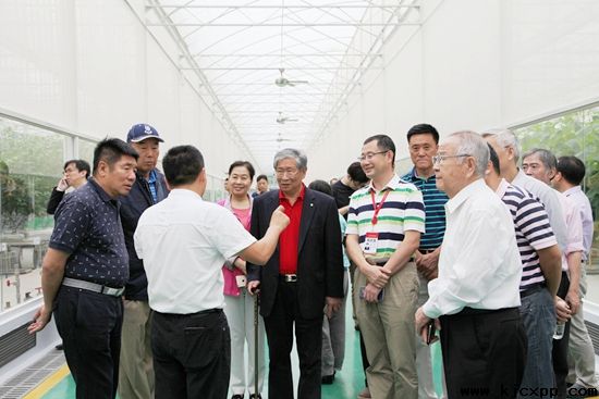 在熱帶設(shè)施農(nóng)業(yè)技術(shù)展示中心參觀調(diào)研,前排(右二)為來慶強副縣長