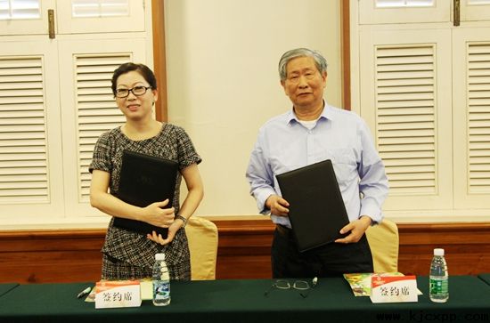 王浩院士(右一)與九州天美環(huán)??萍迹ㄌ旖颍┯邢薰究偨?jīng)理初利國簽署