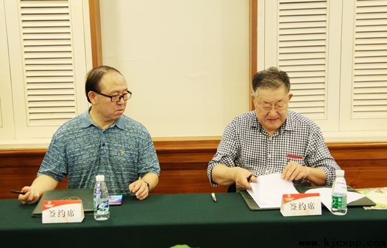 劉昌孝院士(右一)與海南葫蘆娃藥業(yè)集團股份有限公司董事長劉景萍簽署