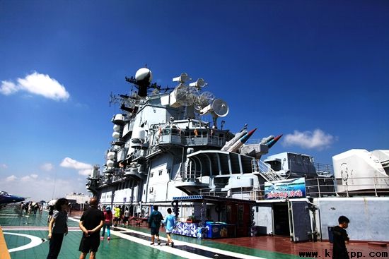 京津高鐵體驗(yàn)結(jié)束,一行人來(lái)到天津?yàn)I海航母主題公園,這是以“基輔號(hào)”航母為核心的軍事旅游園區(qū),中國(guó)生產(chǎn)力促進(jìn)中心協(xié)會(huì)的帶隊(duì)老師帶領(lǐng)臺(tái)灣學(xué)生進(jìn)行航母參觀。