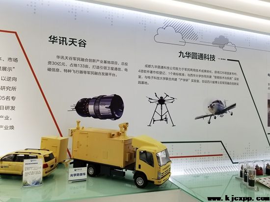 在華訊天谷軍民融合創(chuàng)新產(chǎn)業(yè)基地項目展示平臺前,衛(wèi)星通信、電磁技術(shù)、特種飛行器等高科技產(chǎn)品十分引人注目,有的裝備參加了國慶閱兵式。在軍民兩用技術(shù)成果轉(zhuǎn)化方面獲得226項國家專利。