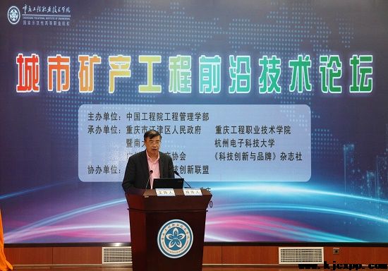 論壇由中國工程院工程管理學(xué)部主辦,重慶工程職業(yè)技術(shù)學(xué)院、重慶江津區(qū)人民政府、暨南大學(xué)、杭州電子科技大學(xué)、廣州城市礦產(chǎn)協(xié)會以及《科技創(chuàng)新與品牌》雜志社等聯(lián)合承辦。重慶工程職業(yè)技術(shù)學(xué)院院長張進主持論壇開幕式。