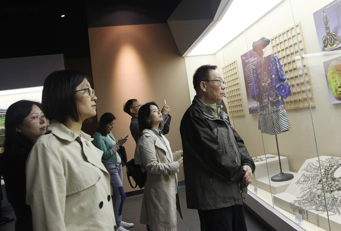 國(guó)家級(jí)技能大師、云南白藥集團(tuán)高級(jí)技師范志偉(前排右一)向調(diào)研人員介紹云南白藥創(chuàng)新設(shè)計(jì)情況,施慶華(前排左一)張彥敏(前排左二)中國(guó)創(chuàng)新設(shè)計(jì)產(chǎn)業(yè)戰(zhàn)略聯(lián)盟中國(guó)好設(shè)計(jì)綜合辦主任劉惠榮(前排左三)
