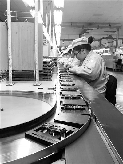 工人們在成都某高新技術(shù)企業(yè)生產(chǎn)車間緊張忙碌。