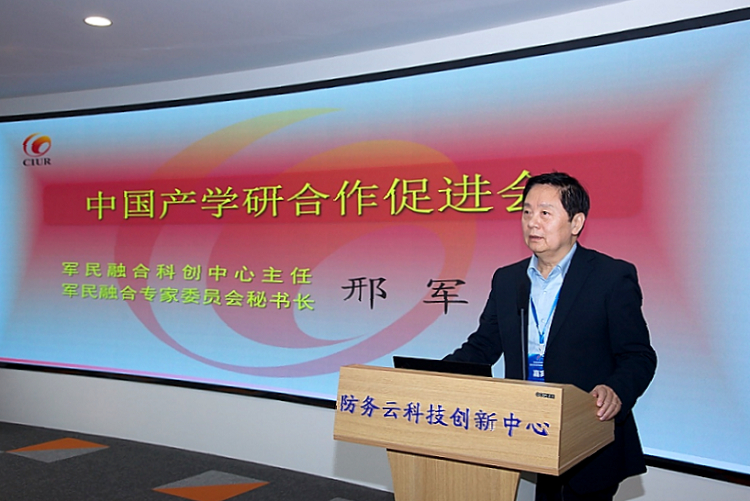 中國產(chǎn)學研合作促進會軍民融合專家委員會秘書長、軍民融合科創(chuàng)中心主任邢軍博士致辭