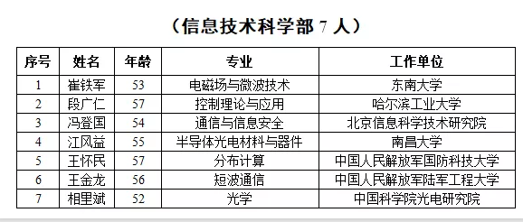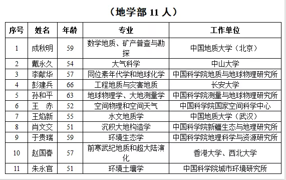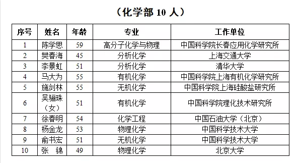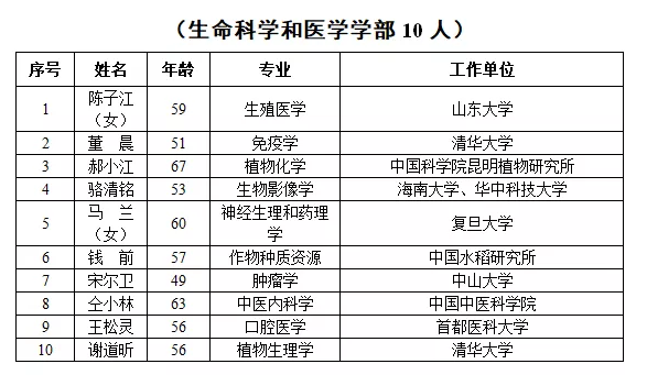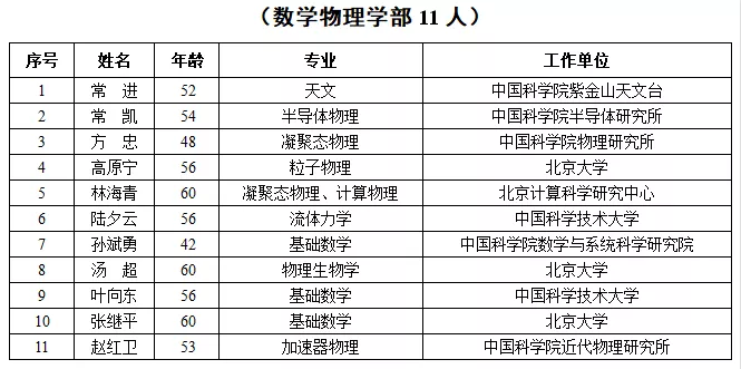 2019年新當(dāng)選中國科學(xué)院院士名單