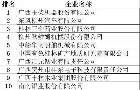廣西創(chuàng)新能力十強(qiáng)企業(yè)榜單