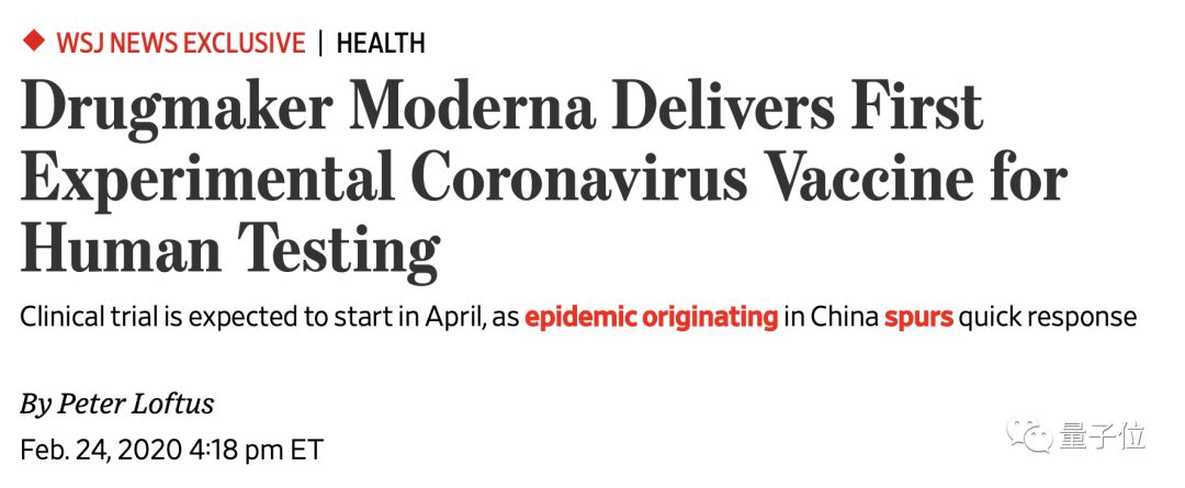 《華爾街日?qǐng)?bào)》剛剛報(bào)道,美國(guó)制藥公司Moderna,已經(jīng)成功研制出針對(duì)新冠病毒肺炎——SARS-CoV-2的人體疫苗,并已將第一批疫苗送美國(guó)國(guó)家衛(wèi)生研究院開啟安全性臨床試驗(yàn)。