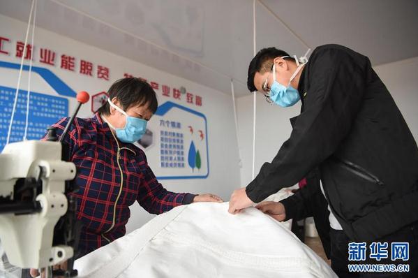 4月15日,在豐鎮(zhèn)市十里庫聯(lián)村扶貧車間,村民在制作噸包袋。 近日,在內(nèi)蒙古烏蘭察布市豐鎮(zhèn)市的扶貧車間,村民們?cè)谧龊靡咔榉揽氐耐瑫r(shí),抓緊時(shí)間生產(chǎn)。目前,豐鎮(zhèn)市已建立傳統(tǒng)手工、來料加工等多類扶貧車間,吸收貧困戶就業(yè),幫助貧困戶增收。 新華社發(fā)(李志鵬 攝)