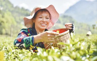 4月8日,在海拔800米的湖南桑植縣西蓮云霧茶葉基地,當(dāng)?shù)夭柁r(nóng)忙著采摘茶葉?! ⊥踉颇?張 潘攝影報(bào)道