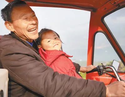 4月8日,在重慶市奉節(jié)縣安坪鎮(zhèn)三沱村,4歲小女孩張思涵和爺爺在小三輪里玩耍。通過臍橙種植和電商銷售,他們家擺脫貧困、邁向富足?! ⑿挛?何雨霜攝影報(bào)道
