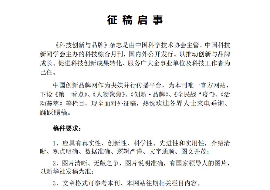 《第一看點》、《人物聚焦》、《創(chuàng)新?品牌》等欄目,現(xiàn)對外廣泛征稿,熱忱歡迎各界人士來電垂詢、踴躍賜稿