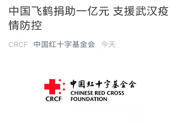 1月26日,中國飛鶴有限公司向中國紅十字基金會捐贈1億元,成立專項基金用于支持武漢及周邊地區(qū)、黑龍江省抗擊疫情的醫(yī)護等人員;支援武漢及周邊地區(qū)疫情救治的臨時醫(yī)院建設(shè)等。