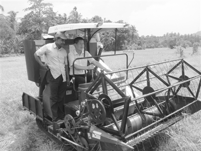 陳洪堤研究員(右)在緬甸景棟雜交水稻種植區(qū)進(jìn)行水稻收割示范操作受訪者供圖5年來,國(guó)際科技特派員共獲財(cái)政支持2790萬元,卻撬動(dòng)了科技特派員派出單位5.2億元的自投資金?!盎?/p>