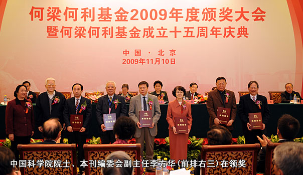 中國科學(xué)院院士、本刊編委會副主任李方華 獲2009何梁何利科學(xué)與技術(shù)進步獎 何梁何利基金2009年度頒獎大會暨何梁何利基金成立15周年慶典于11月10日下午在北京釣魚