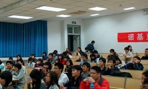 活動現(xiàn)場 11月3日晚7時,諾基亞青年創(chuàng)業(yè)就業(yè)大講堂在華中科技大學(xué)舉行,北京行智公司董事長人生體驗教學(xué)培訓(xùn)專家裴慶豐先生應(yīng)邀擔(dān)任本次活動的創(chuàng)業(yè)導(dǎo)師,為華中科技大
