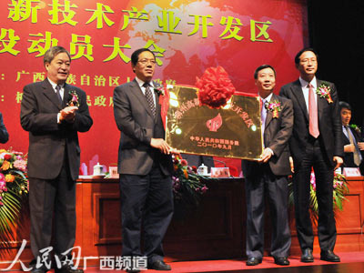 授牌儀式(圖片來源/人民網(wǎng)廣西頻道)新華網(wǎng)南寧11月19日電(記者李斌)記者從19日在柳州國家高新技術(shù)產(chǎn)業(yè)開發(fā)區(qū)舉行的建設(shè)動員大會上了解到,加上新近獲批的柳州高新區(qū)等