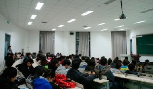 活動現(xiàn)場 11月17日晚7時,在內(nèi)蒙古科技大學(xué)模擬法庭內(nèi),諾基亞青年創(chuàng)業(yè)就業(yè)大講堂在此舉行。上海紅坤投資管理有限公司董事長黃松陽來到同學(xué)們中間,分享創(chuàng)業(yè)經(jīng)驗及感悟