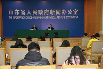 新聞發(fā)布會現(xiàn)場 2015年2月6日,山東省人民政府新聞辦公室舉行新聞發(fā)布會,邀請山東省發(fā)改委副主任秦柯、山東省交通運(yùn)輸廳副廳長江成、山東省金融辦副主任初明鋒,就