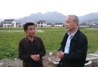 張自立(右)在與農(nóng)民交談 他年近六旬,幾十年如一日工作在自己的崗位上,默默無聞、兢兢業(yè)業(yè);他謙虛嚴(yán)謹(jǐn)、教學(xué)相長,為國家培養(yǎng)了一批又一批農(nóng)業(yè)人才;他時(shí)刻關(guān)心著農(nóng)業(yè)