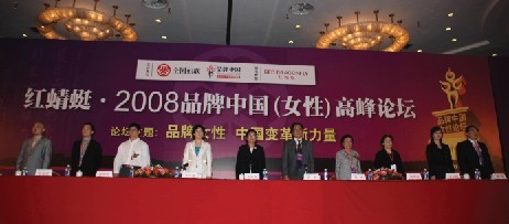 2008年5月24——25日,由中華全國婦女聯(lián)合會和品牌中國產(chǎn)業(yè)聯(lián)盟聯(lián)合主辦的紅蜻蜓·2008品牌中國(女性)高峰論壇在北京九華山莊隆重舉行。論壇主題是“品牌女性,中國變