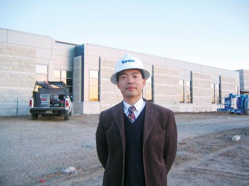 在英國樸茨茅斯大學博士畢業(yè)典禮上金明(右)和導師合影 金明(MartinMing/Jin)是畢業(yè)于英國樸茨茅斯大學的材料學博士,作為英國皇家工程學會的會員,他致力于推動WPC(