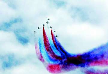 新加坡航展是亞洲最大規(guī)模的航空航天與國防科技展覽會(huì),這次參展商數(shù)量創(chuàng)下了歷史之最 2014年2月11日,2014年新加坡航展開幕,圖為飛行表演隊(duì)空中精彩展示(攝影/孫自法)