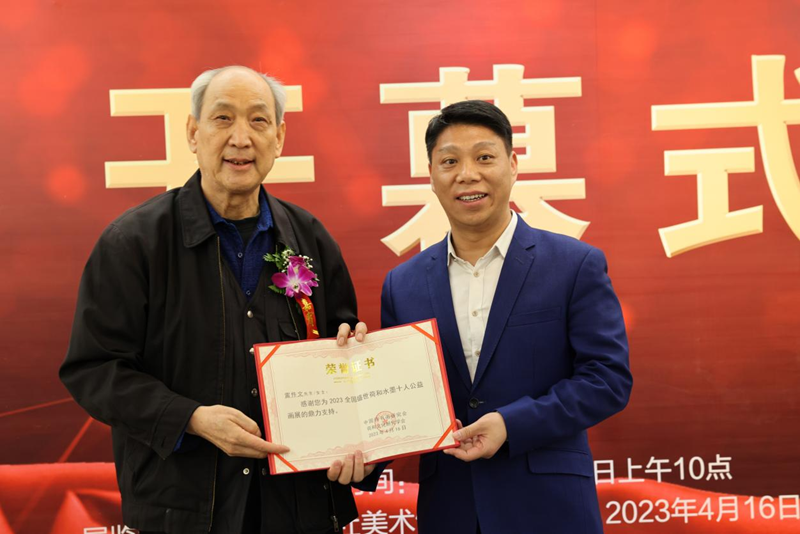 4月16日,2023全國盛世荷和十人公益畫展活動在北京燕京書畫社美術(shù)館開幕,活動展出了來自全國各地十位軍警藝術(shù)家的60幅荷花主題作品。中國詩書畫研究會會長陳士富、中紀(jì)委駐人