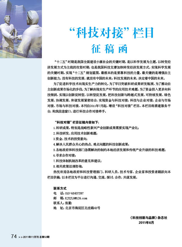 “科技對(duì)接”欄目征稿函