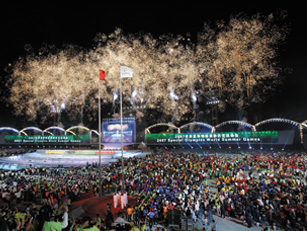 2007年世界夏季特殊奧林匹克運動會的熊熊圣火,在擁有73年歷史的上海江灣體育場,伴隨著舟舟指揮的一曲《歡樂頌》,在人們的無比眷戀中緩緩熄滅。那漫天飛舞、如夢如幻般繽