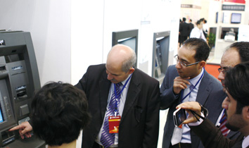 國(guó)外的參觀者正在體驗(yàn)廣電運(yùn)通所展出的具有創(chuàng)新功能的先進(jìn)ATM產(chǎn)品 近年來,隨著我國(guó)銀行卡產(chǎn)業(yè)的迅速發(fā)展和銀行業(yè)自助服務(wù)的日趨成熟,ATM已成為人們?nèi)粘I钪信c金融