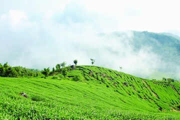 感受生態(tài)綠茶園 在福建省南靖縣的深山內(nèi),有一家茶園叫洋頂崠茶園。這片遠絕塵囂、海拔1050米的茶園,與聞名世界的土樓群相毗鄰。這一地區(qū)山峰環(huán)立中藏濕地,常年靈霧