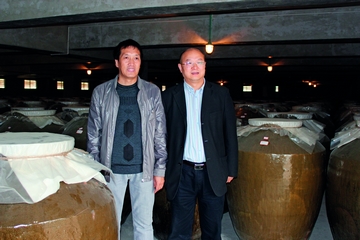 董事長王平鑫(左)與來訪客在儲藏酒現(xiàn)場留影 中國酒都茅臺鎮(zhèn),又誕生了一匹醬香“黑馬”—金力來?! ≡诘谑弥袊埖耆蛘搲?,經(jīng)過協(xié)會提名、企業(yè)申報、專業(yè)