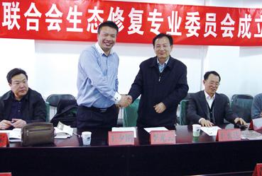 王夕剛(左二)被任命為生態(tài)人類聯合會生態(tài)修復專業(yè)委員會主任 生態(tài)修復是功在當代、利在千秋的偉業(yè)。在人類城市和工業(yè)化進程高速發(fā)展的今天,地球的土壤、植被、水體