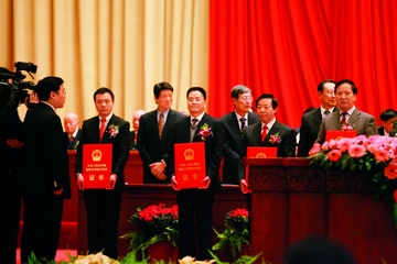 張一敏教授(左二)在人民大會堂受獎 張一敏,教授、博士生導(dǎo)師,現(xiàn)任武漢科技大學(xué)資源與環(huán)境工程學(xué)院院長和武漢理工大學(xué)資源與環(huán)境工程學(xué)院院長。武漢科技大學(xué)“楚天學(xué)者計