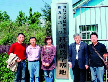 賈仁安教授(右二)等在科研教學基地 頂天立地,本形容氣概豪邁,而在南昌大學系統(tǒng)工程研究所所長賈仁安教授這里,它成為了一種研究模式的簡稱。賈仁安介紹,“天”為系統(tǒng)