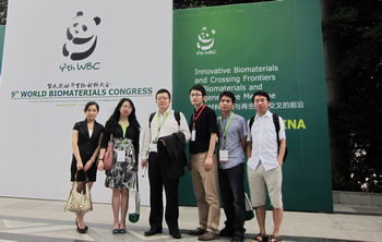 潘浩波(左三)參加第九次世界生物材料大會 他,意氣風發(fā),剛過而立之年,是兩歲孩子的爸爸;他從香港轉(zhuǎn)戰(zhàn)深圳,從單一的基礎(chǔ)學術(shù)研究邁向產(chǎn)、學、研一體化的道路,在這個發(fā)展節(jié)