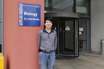 甘銀波在英國York大學生物系前留影 擬南芥,又名鼠耳芥、阿拉伯芥,是植物科學研究中的模式生物之一,發(fā)揮著類似小白鼠和果蠅在動物遺傳學研究中所起的作用。因其生活力