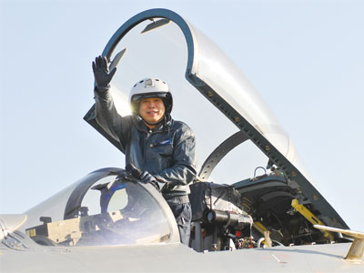 成功試飛歸來(lái) 夏日的一天,上午10時(shí)50分,一架國(guó)產(chǎn)新型第三代殲擊機(jī)在北方某機(jī)場(chǎng)的跑道上,蓄勢(shì)待發(fā)。隨著塔臺(tái)首席指揮員的一聲令下,這架我國(guó)自行研制、具有自主知識(shí)產(chǎn)